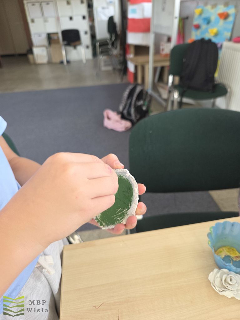W bibliotece w Wiśle zorganizowaliśmy warsztaty dla dzieci nawiązujące do fraszki „Na lipę”. Uczestniczki wykonały miseczki z gliny samoutwardzalnej w kształcie liścia lipy.